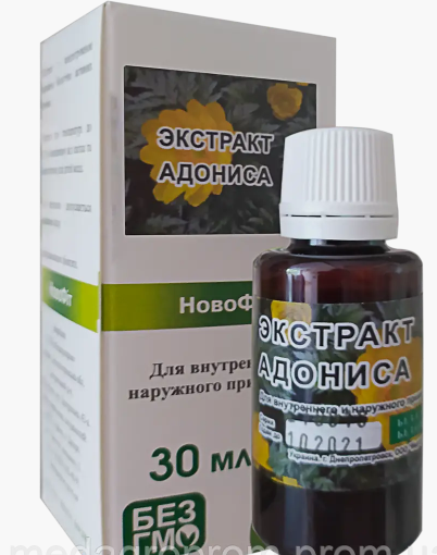 Екстракт Горицвіту посилює і уповільнює серцеві скорочення, збільшує ударний хвилинний об'єм серця, усуває застійні явища (т. к. володіє невеликим сечогінним властивостям, що корисно для хворих з набряками серцевого походження), заспокоює нервову систему.